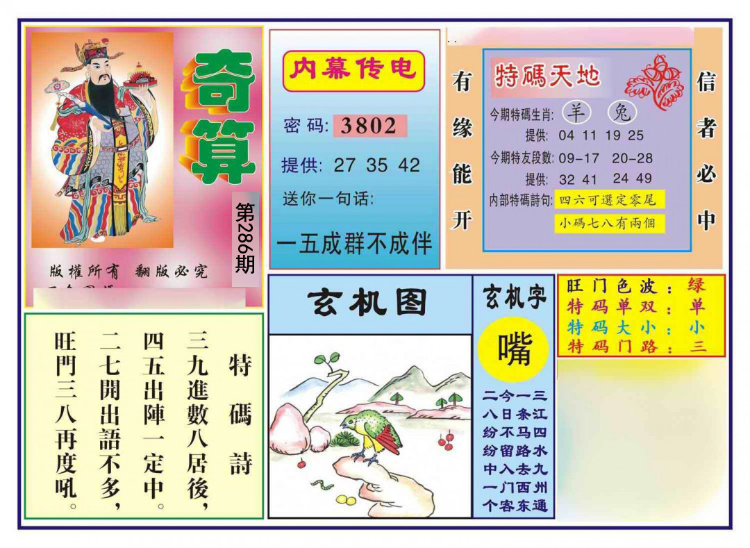 286期:六肖中特(鸡虎羊兔龙猴)开?00 |